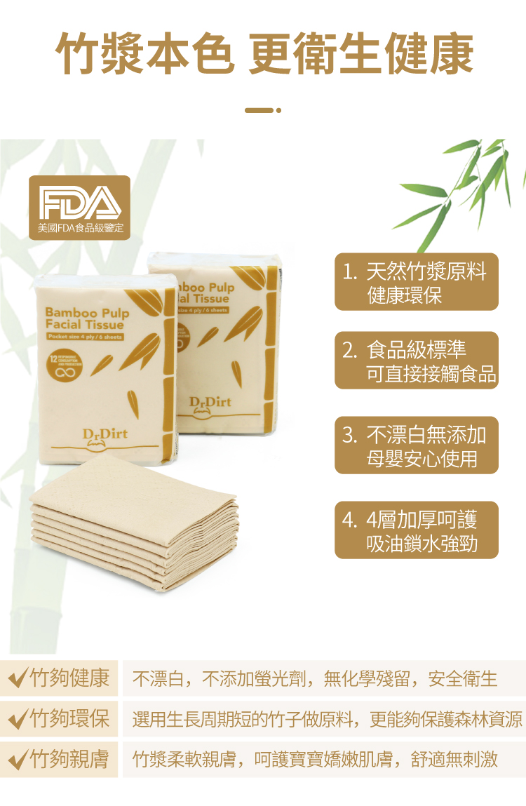 ‧ 便攜食品級竹漿紙手巾,食品級安全認證,可放心接觸食品