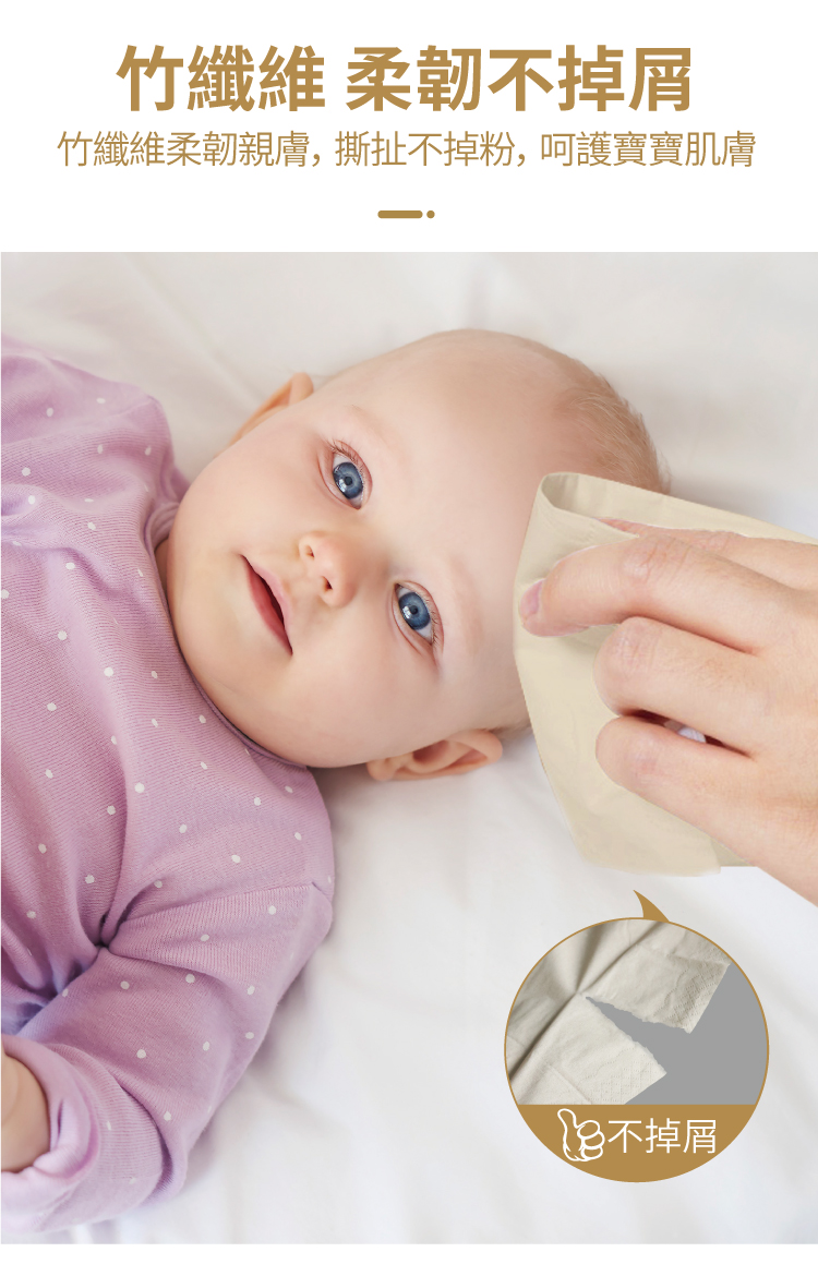 ‧ 竹纖維柔韌不掉屑,能吸附髒物,柔軟親膚,呵護寶寶肌膚。