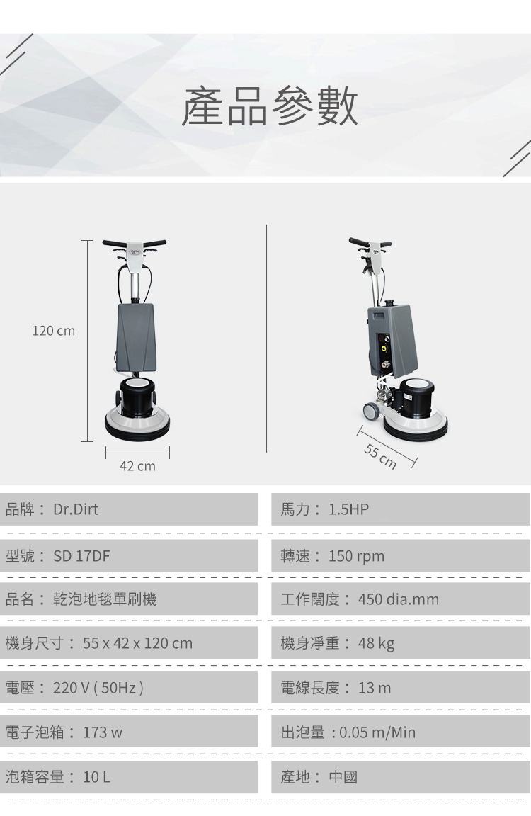 Dr.Dirt 電子泡箱 SD 17DF地毯單刷機用