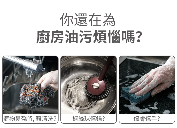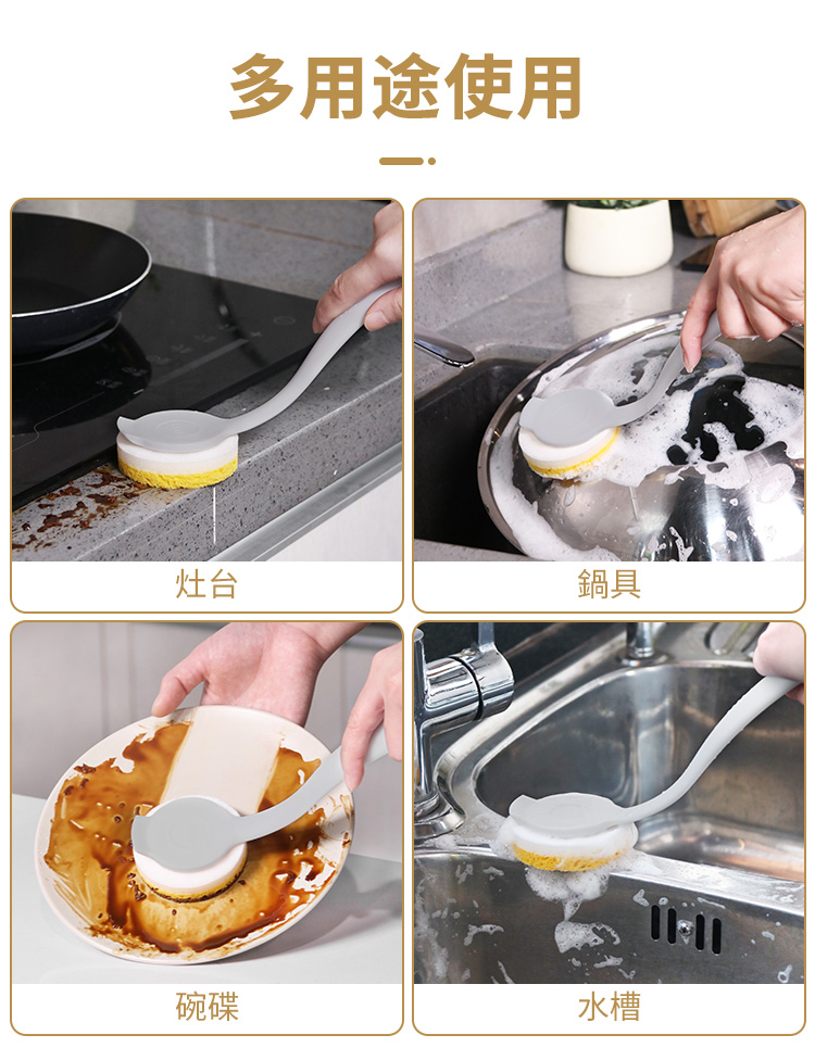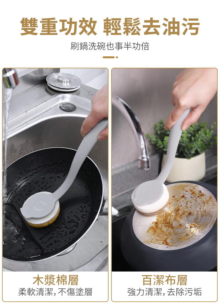 - 魔術棉設計 : 兩款刷頭隨時更換, 雙重功效 輕鬆去油污