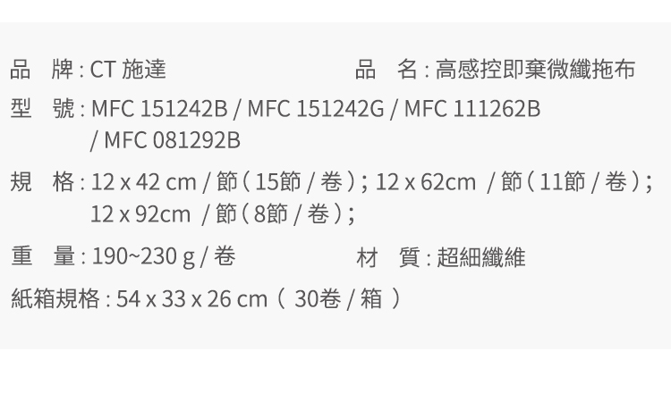 施達 高感控即棄微纖拖布 綠色 1卷/15節