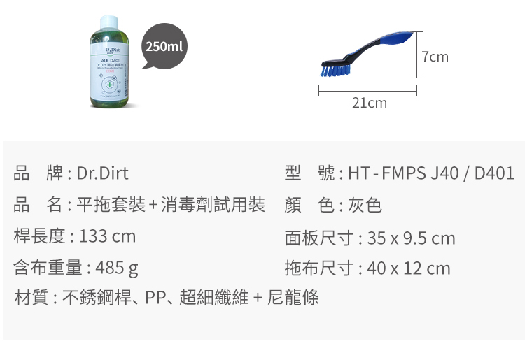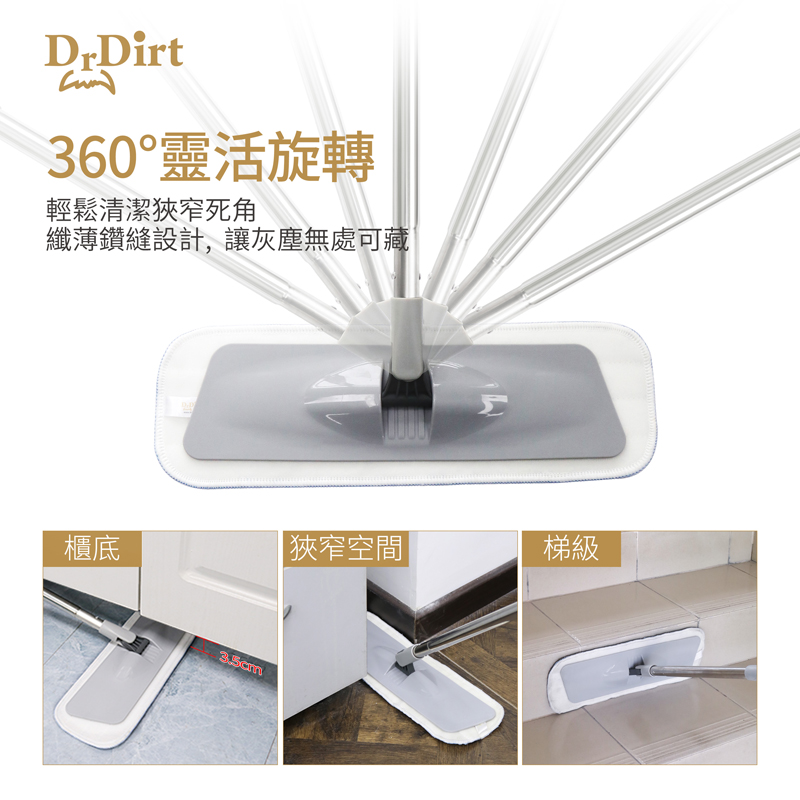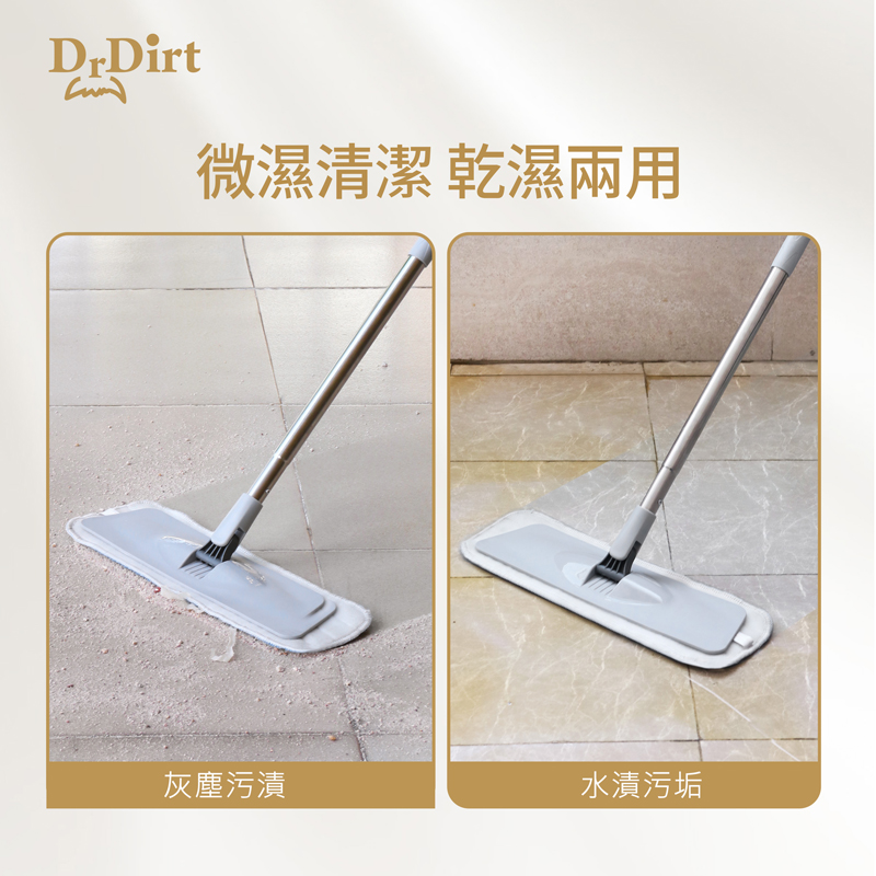 Dr.Dirt平拖套裝,平板拖把套裝,360度旋轉拖把,木地板清潔拖把,DrDirt平拖套裝,平拖板套裝,平推地拖套裝,拖地,地拖,清潔地面,木地板清潔,瓷磚地面清潔,家居地面清潔,一般清潔,日常清潔,日常保潔,推塵,塵推,清理灰塵,大廳清潔,打掃房屋,清潔臥室,拖把頭,平拖頭,平板地拖頭,平拖布,平板拖把布,拖布,平板拖,Flat Mop Set,HT-FMPS J40/D401,HTFMPS J40/D401,HTFMPS J40D401,HT FMPS J40/D401