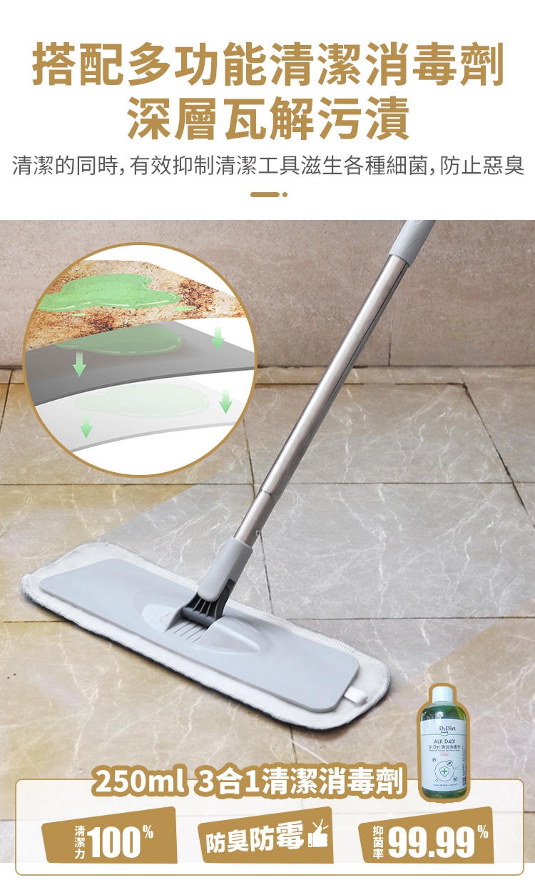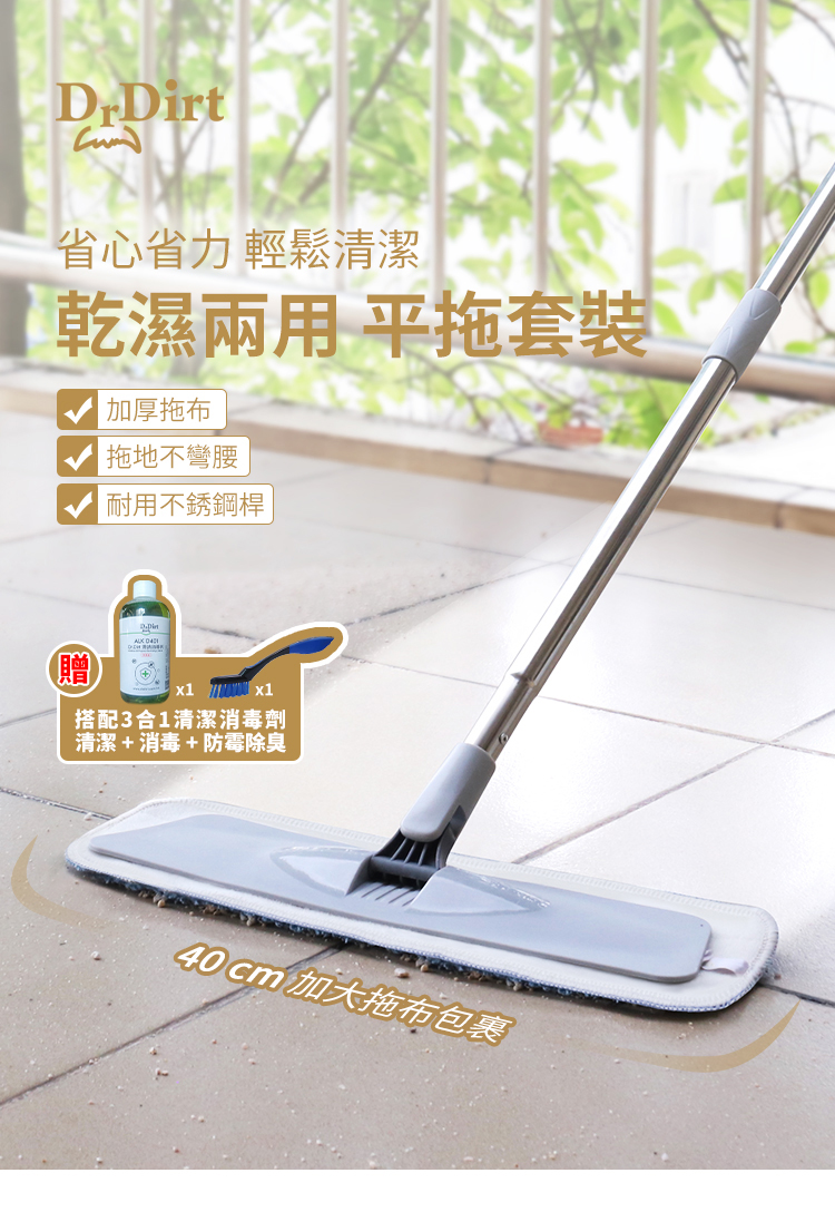 Dr.Dirt 平拖套裝 贈送清潔消毒劑&小刷子