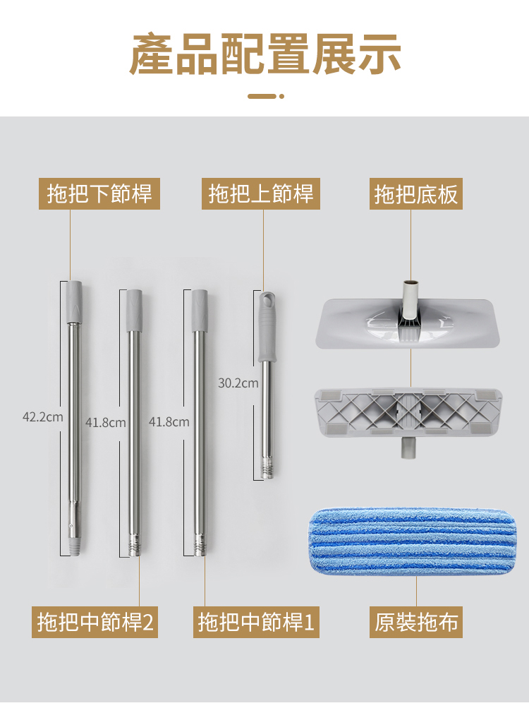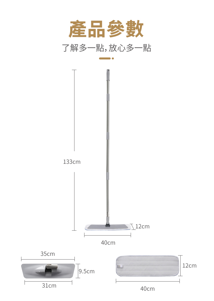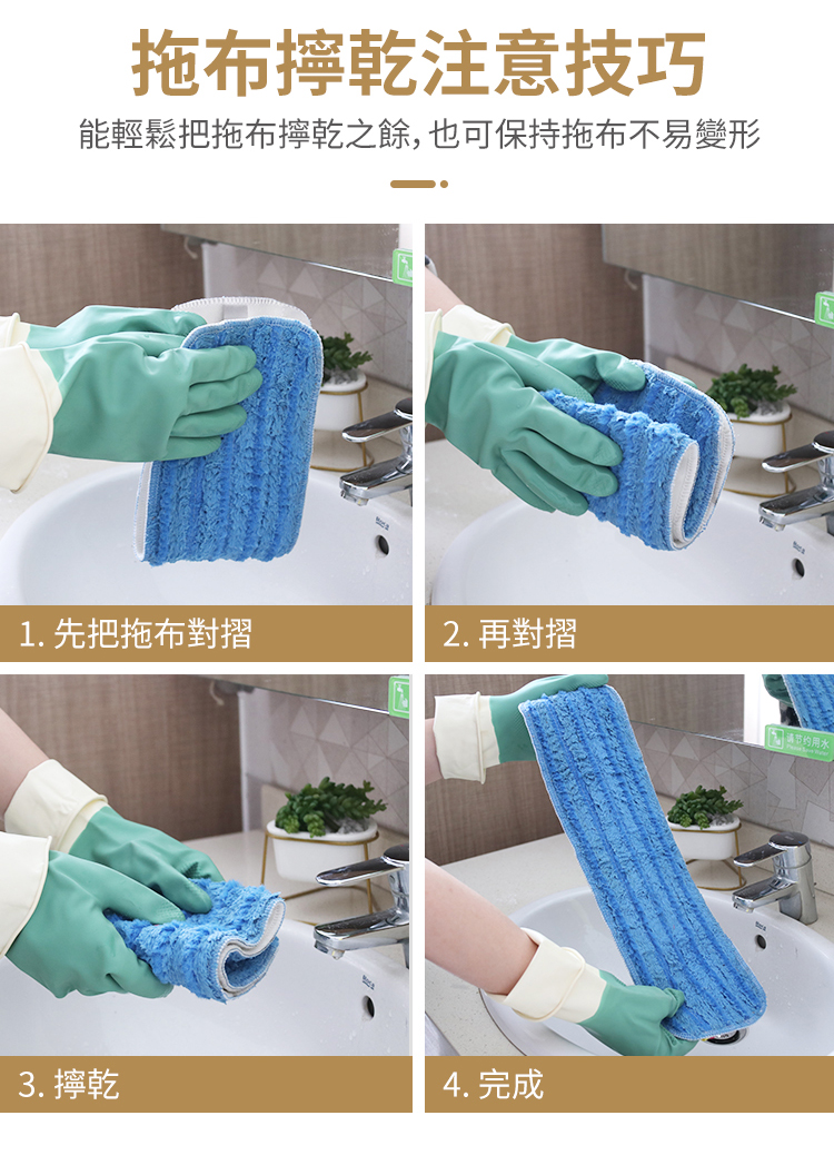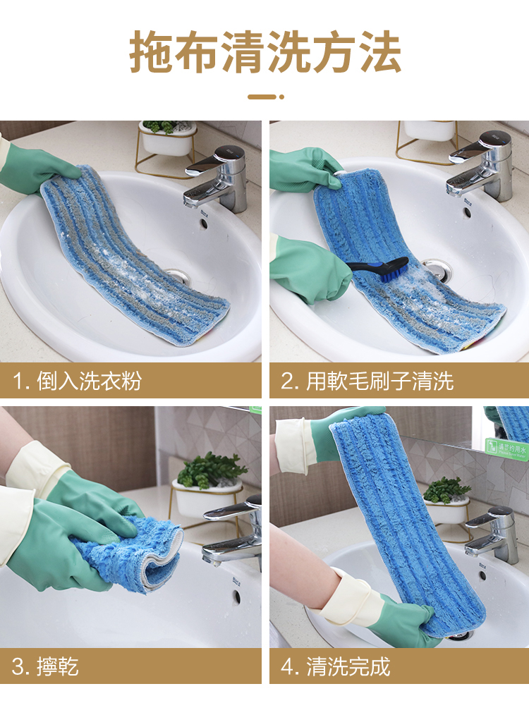- 超細纖維+尼龍條編織拖布吸附鎖水,強力去污