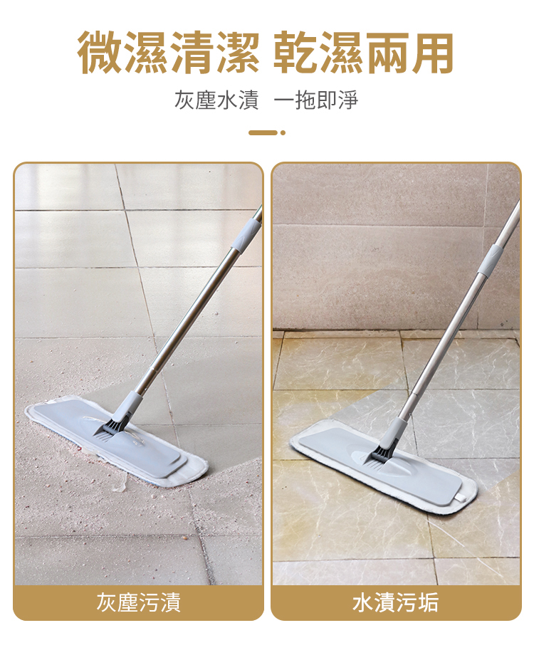 - 乾濕兩用平推地拖