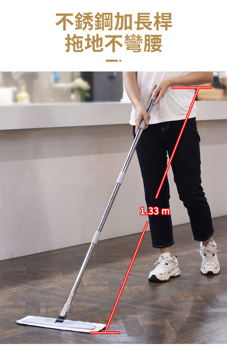 - 1.33米加長不銹鋼桿 拖地不彎腰