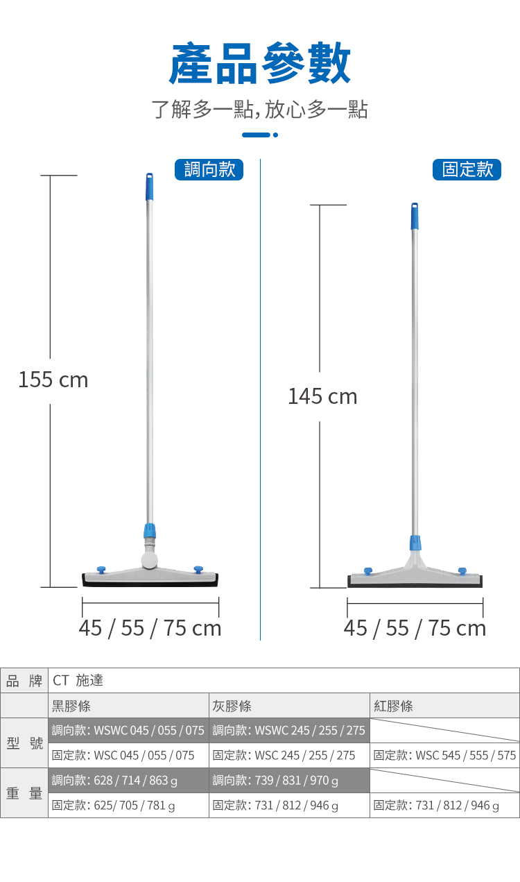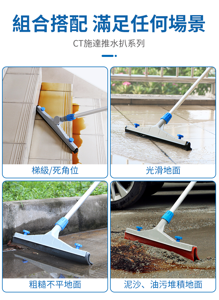 施達 耐磨防油戶外靈動型調向推水刮配灰色膠條 黑色 55cm