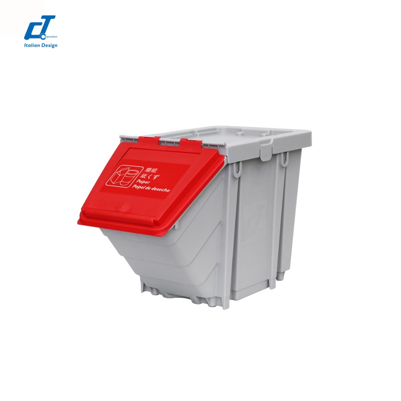 施達 4色免觸開蓋分類回收箱 紅色蓋 (廢紙) 25L