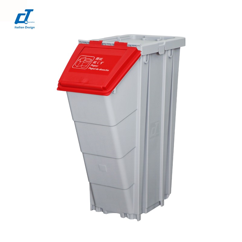 施達 4色免觸開蓋分類回收箱 紅色蓋 (廢紙) 50L
