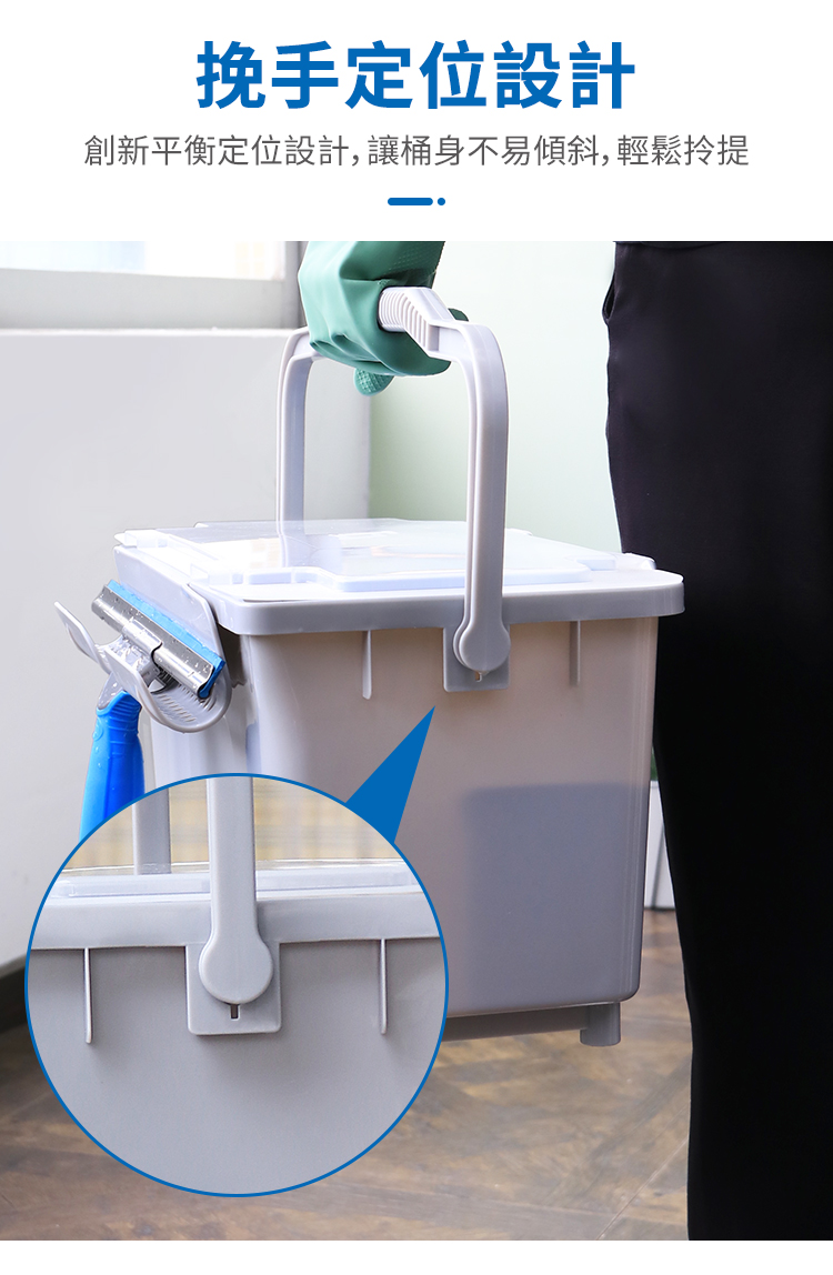 - 防滑舒適手柄,且有平衡定位設計,讓拎提時桶身不易傾斜