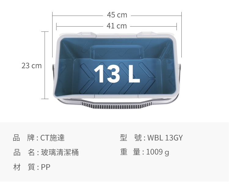 - 可裝13L水,專為玻璃清潔設計,大小容量適中,小巧靈活