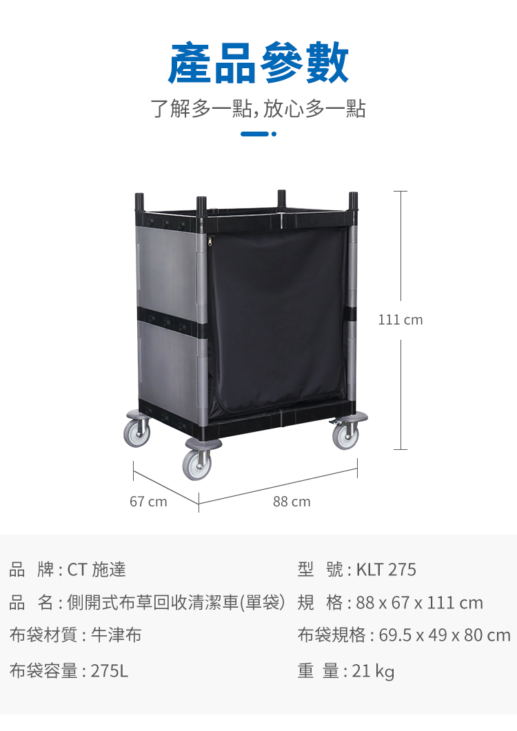 CT施達 側開式布草回收車 單袋275L