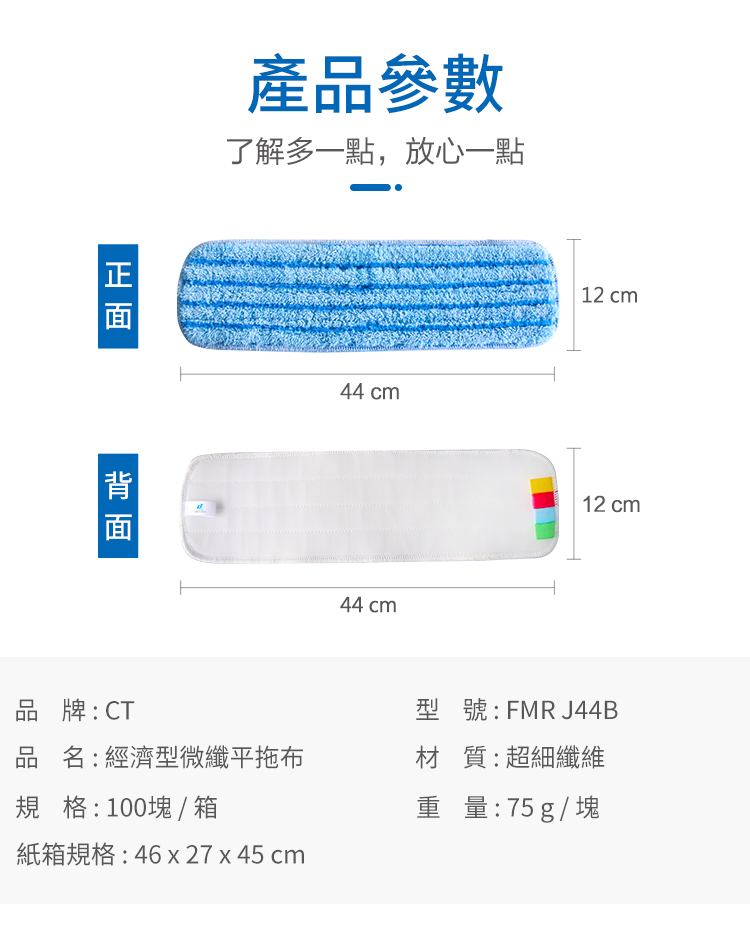FMR J44B經濟型微纖平拖布 產品簡介: