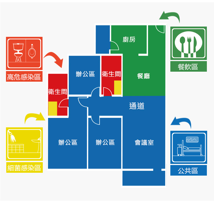 - 帶有4色標籤識別系統,根據使用環境進行顏色分類,減低交叉感染