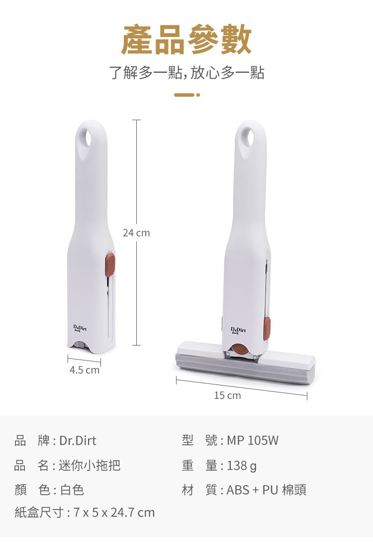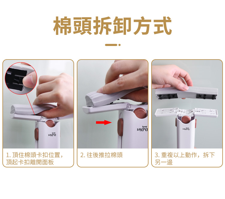 - 棉頭凹槽設計 吸附灰塵污漬 輕鬆清潔