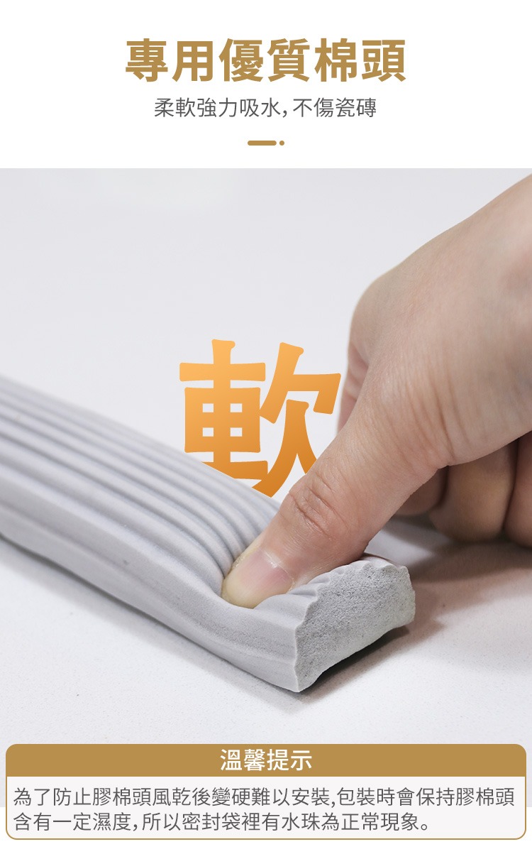 - 選用優質棉頭柔軟強力吸水,不傷瓷磚或桌面