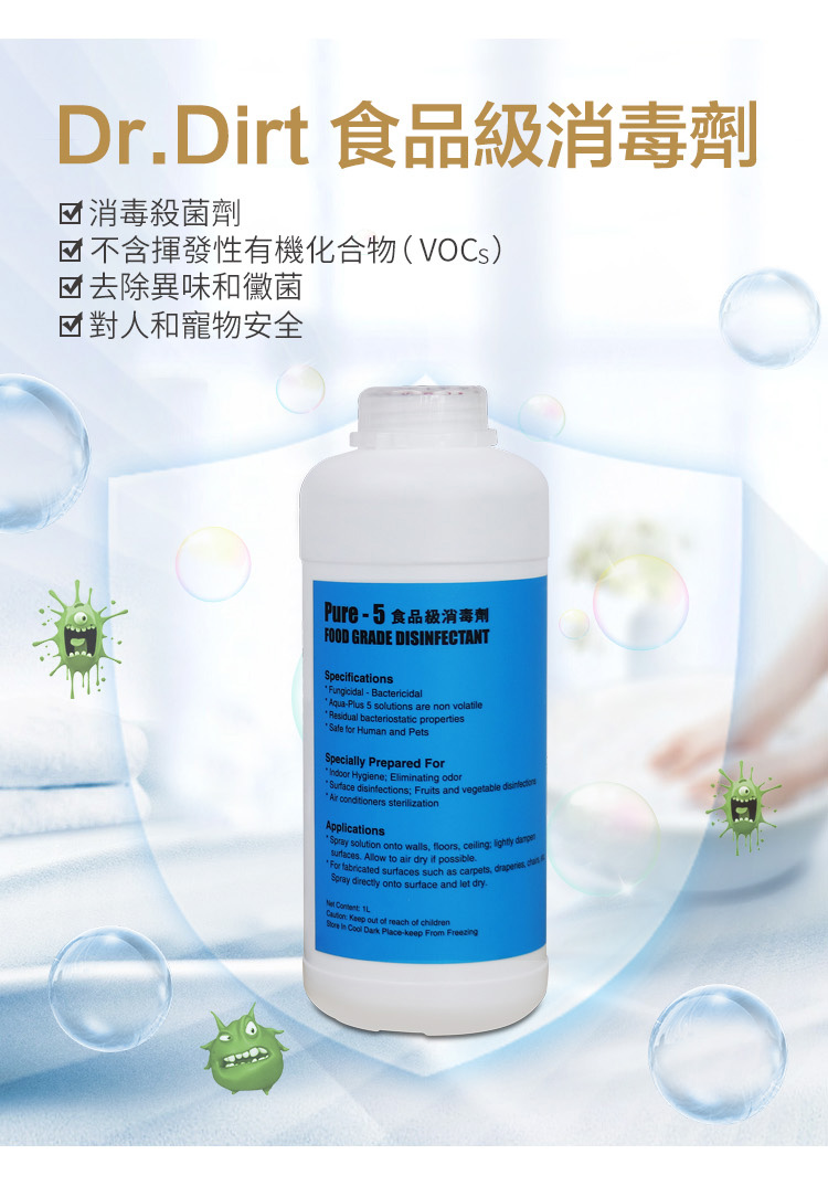 * 搭配Dr.Dirt食品級消毒劑進行消殺,既能節省消毒劑,又能實現快速高效省力,節省你寶貴的時間和精力。