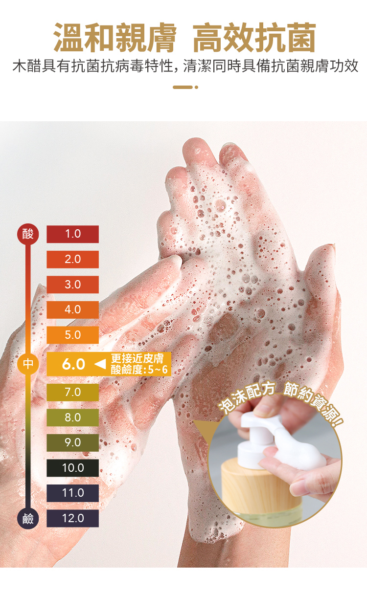 天然木醋泡沫洗手液 產品簡介: