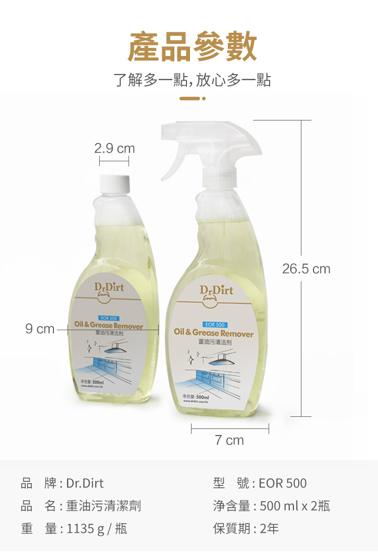 Dr.Dirt 重油污清潔劑 即噴即用2支優惠套裝(500ml*2) (附送小刷子)
