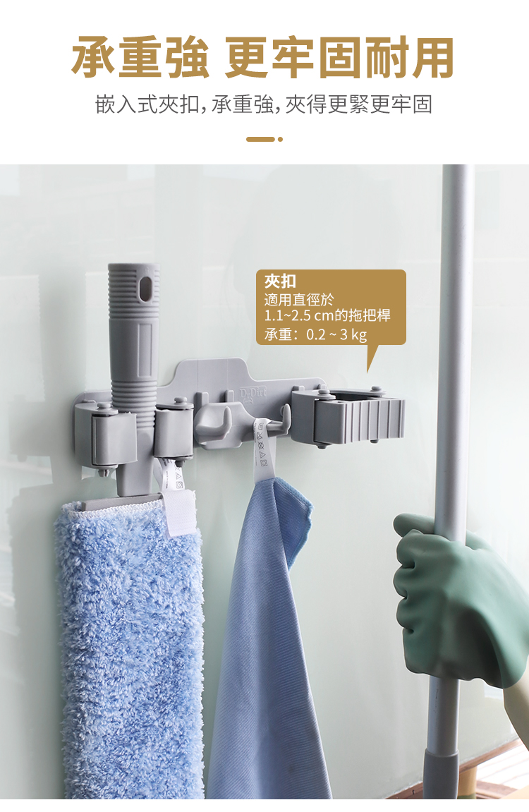 - 適用於直徑1.1-2.5cm的桿 拖把、掃把、雨傘、拐杖
