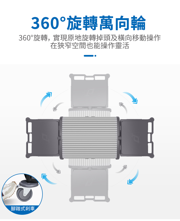 - 符合人工程學手柄,手感舒適、方便操控靈活,即使在狹窄過道也能操控自如。