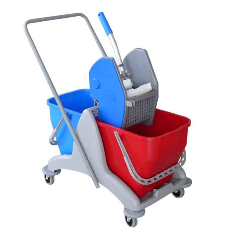 施達下壓式雙桶榨水車,配有2個25L的水桶,兩個加起來總共可以裝50L的水。施達榨水車,下壓式的榨水器,可以將拖把的水份方便輕鬆的擠乾淨。Bucket Trolley輕鬆一壓,拖把的水就嘩嘩的流出來了。擠水車的各個塑料部件都是採用全新的工程塑料製造的,特別堅固耐用,防碰撞。