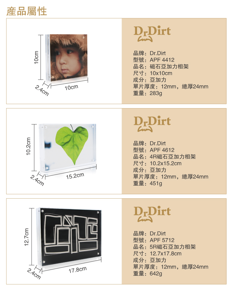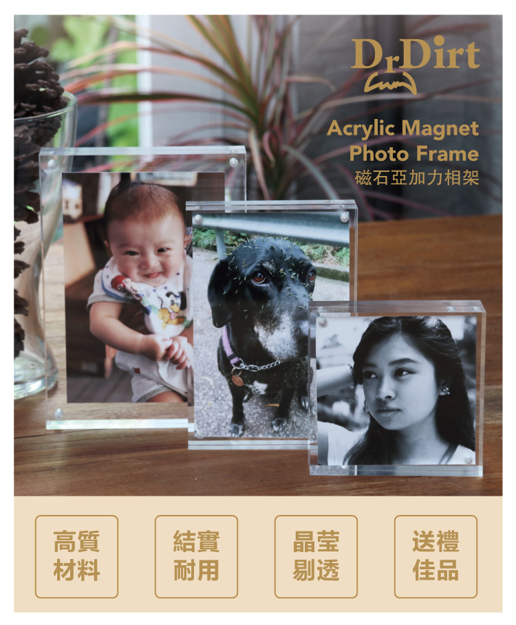 - 安裝簡單,利用磁石互吸原理,把照片放在兩塊亞加力之間即可固定