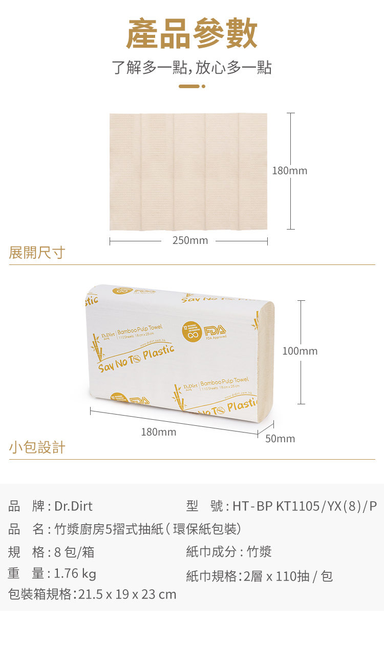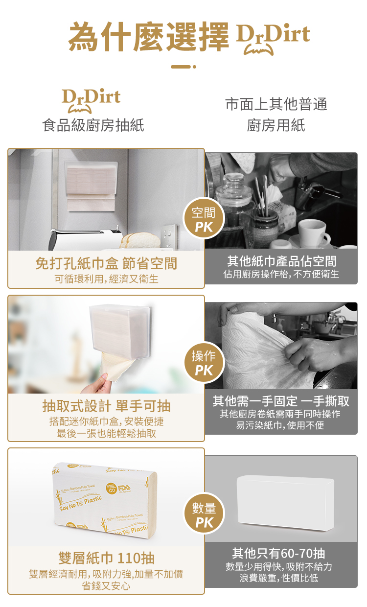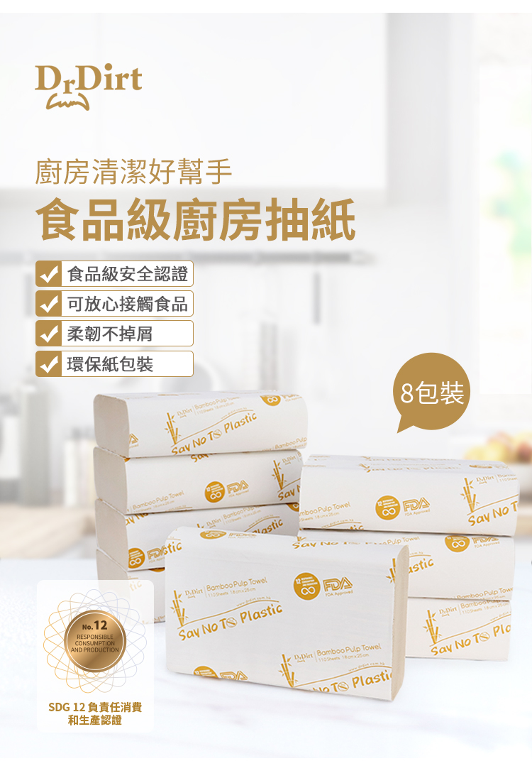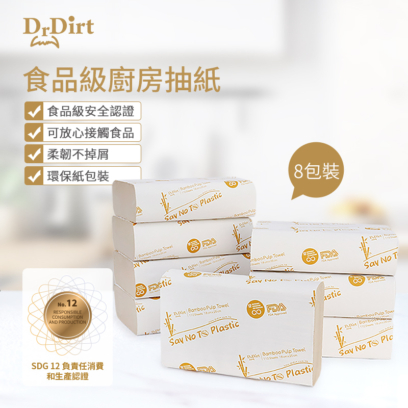 Dr.Dirt 迷你廚房浴室食品級竹漿抹手紙廚房紙 (8包1箱)