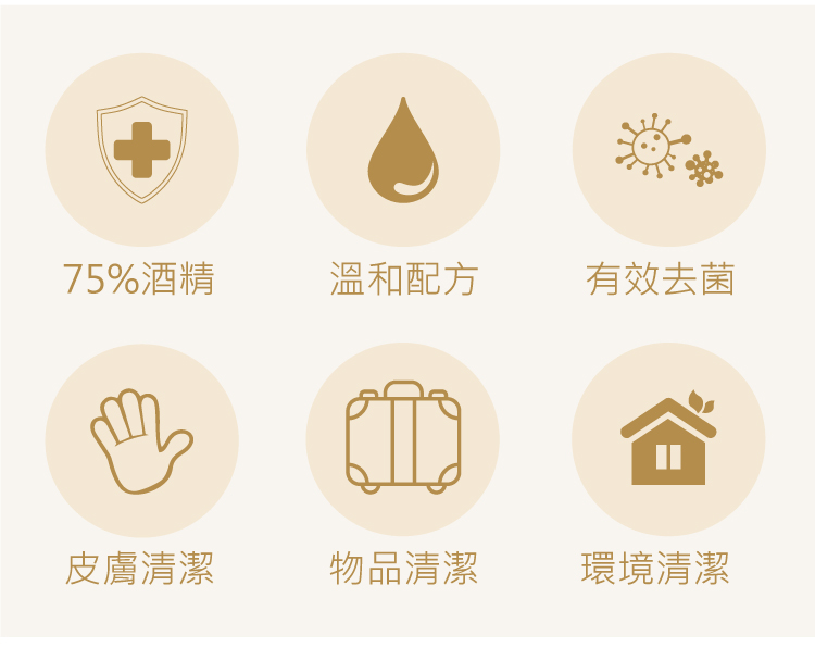 - 75%酒精,殺滅99.9% 病毒及細菌