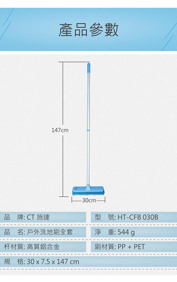 施達 室外推水扒 45cm扒頭+伸縮桿 藍色