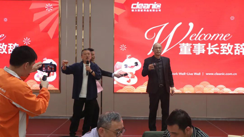 晚宴開始前,吳董向全體員工和來賓們分享了公司的使命、願景、價值觀,以及公司未來5年的發展戰略。黃董則肯定了各部門及同事們在2024年所取得的進步,並向全體同事與現場嘉賓致以新年的問候。