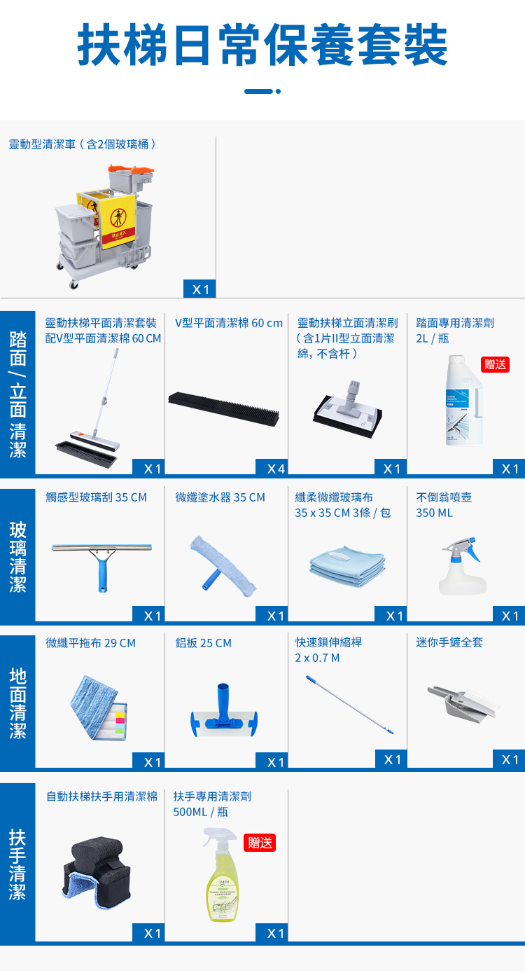 日常保潔保養:扶梯清潔工具套裝,防患於未然