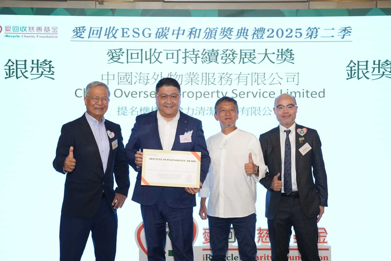 同期頒獎禮上,健力集團提名的“中國海外物業服務有限公司”和“嘉怡物業管理有限公司”分別得獲“愛回收可持續發展大獎”鑽石獎和銀獎。兩家企業深耕綠色運營的專業能力和環保貢獻獲行業認可。