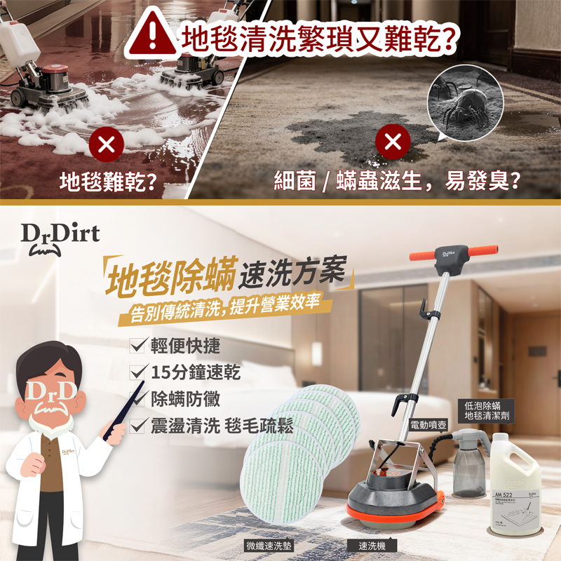 唔使再煩!Dr.Dirt 全新推出嘅 「地毯除蟎速洗方案」,幫你徹底同舊式清潔方式講拜拜!我哋採用先進震盪式清洗科技,配合專業除蟎清潔劑,強效殺滅深層蟎蟲,清潔同時呵護地毯纖維,洗完一樣鬆軟柔順✨。