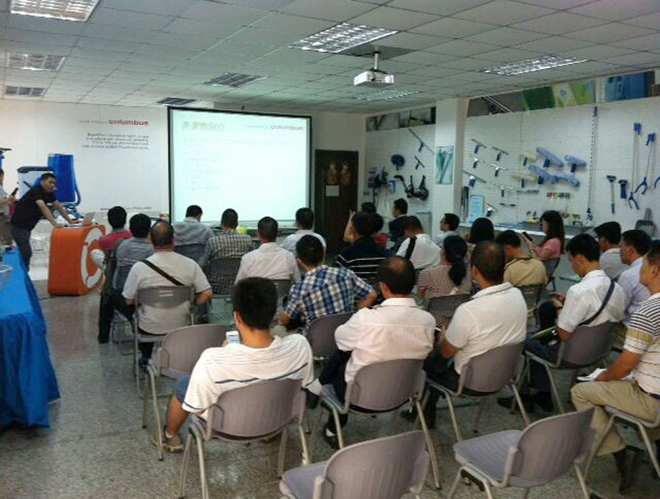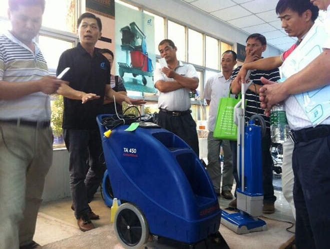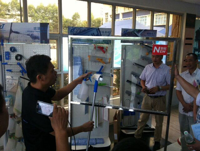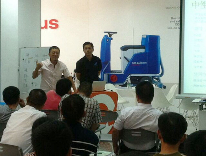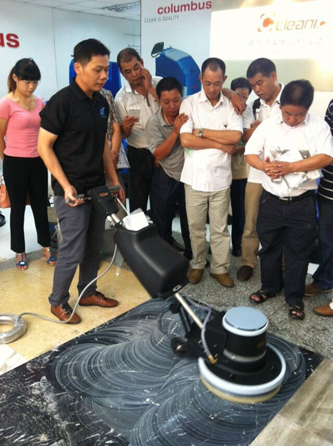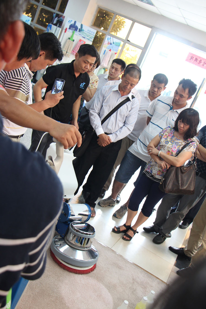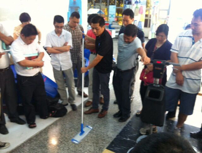 2014年9月26日,由佛山健力清潔用品有限公司及廣州市城市管理宣傳教育中心舉辦的第一期保洁員(高級) 培訓班經已圓滿結束! 在現場健力產品培訓師細心講解地面打蠟流程, 地毯清洗方法, 石面翻新處理及施達清潔工具應用. 席上學員用心細聽, 更與培訓師不時交流具體的操作情況。