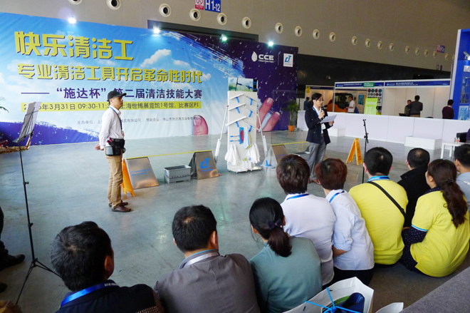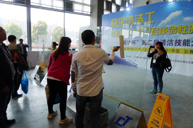 在第十六屆中國清潔博覽會期間, 我司於展覽館內舉行施達盃 – 第二屆玻璃清潔大賽, 今次共有20多間公司單位參與, 比賽過程異常激烈。