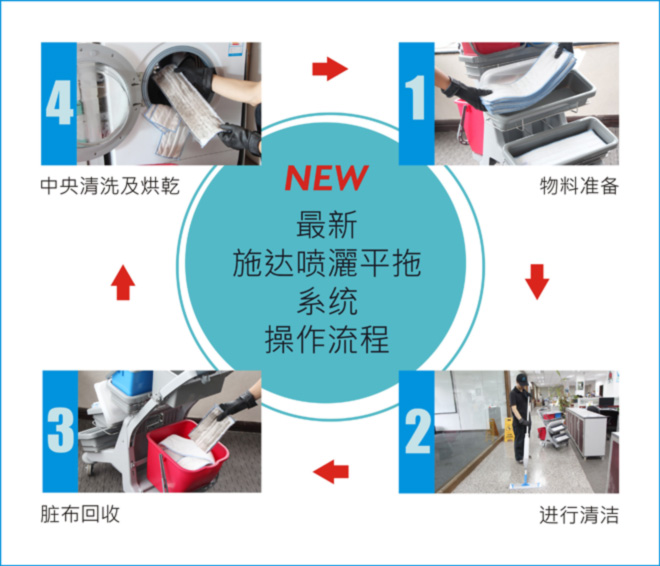 佛山市施達清潔設備有限公司一向致力推動標準化清潔概念及系統方案,在清潔行業中一直處於行業前列,先後引入國際標色系統、噴灑平拖中央清洗系統等先進的衛生管理理念,優質的清潔工具產品以及完善的系統性產品培訓服務,更是獲得各大醫院、機場、酒店等重要客戶的認可與讚許。