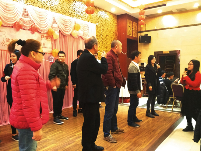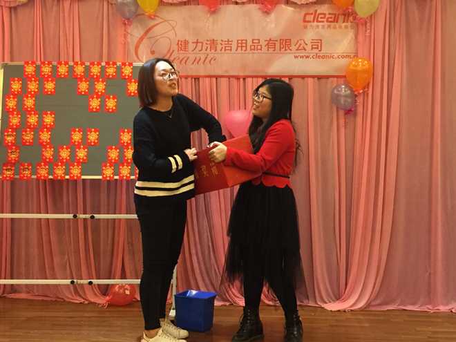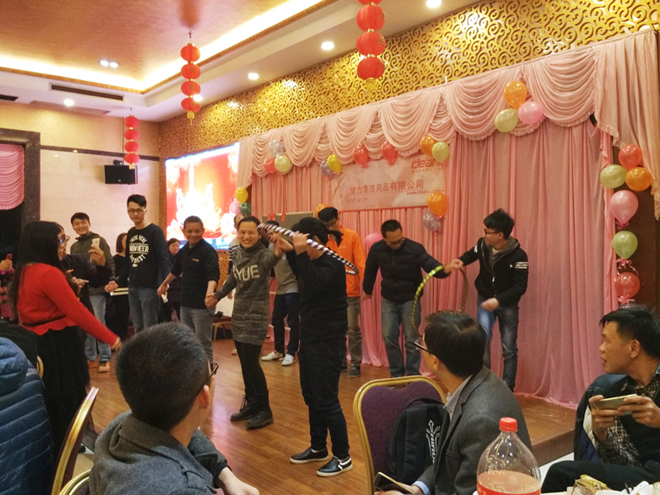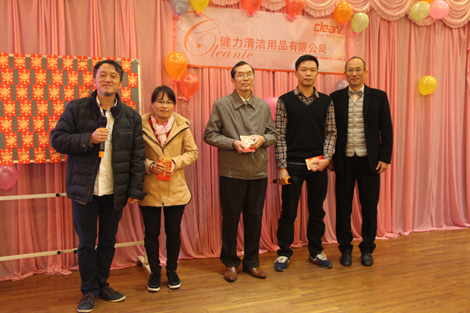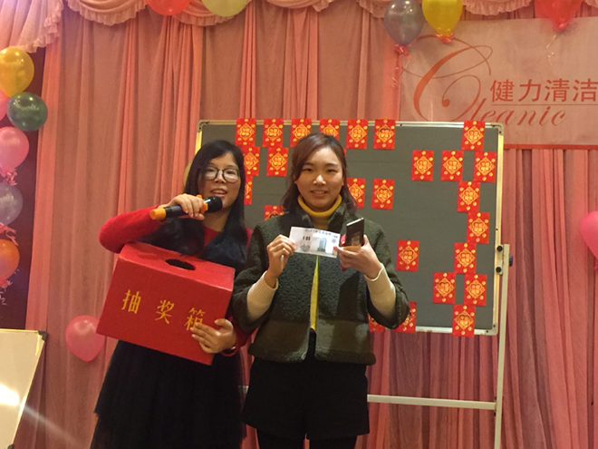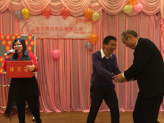 歡聲笑語、春暖花開,新的一年又開始啦!佛山健力清潔用品有限公司一年一度春茗活動於2017年2月10日 (星期五) 舉行. 當天全體公司同事聚首一堂, 場面熱鬧. 晚會中有頒獎、遊戲節目、豐富抽獎等精彩環節。