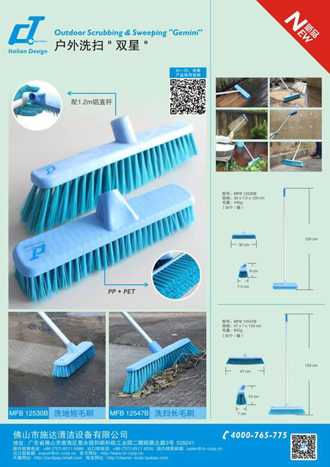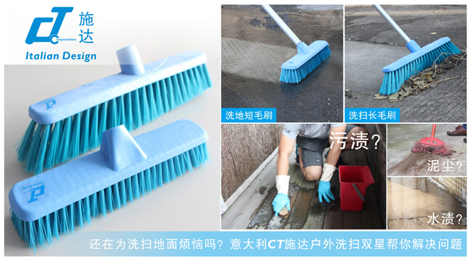 意大利CT施達推出的新品戶外洗掃“雙星”能幫你輕鬆解決這些問題,施達戶外毛刷採用優質PET材料,刷毛具有韌性強、耐磨度高且不容易彎曲變形等特點,無論是刷洗污漬還是清掃泥沙都能讓你稱心如意,具有清潔效果好、使用壽命長的優點。