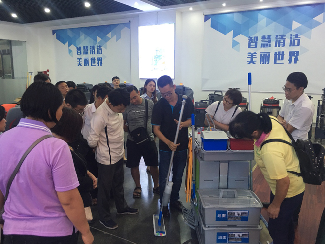 通過講解演示,讓來賓們體驗日常保潔工具(除塵、濕擦、拖地、垃圾收集等)的搭配及使用,連同裝配