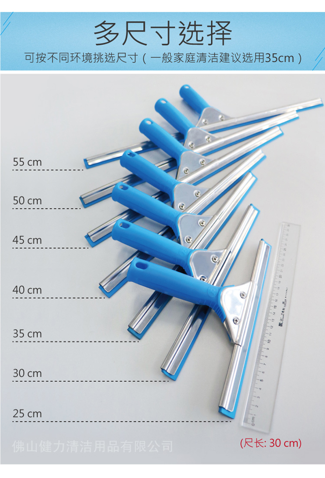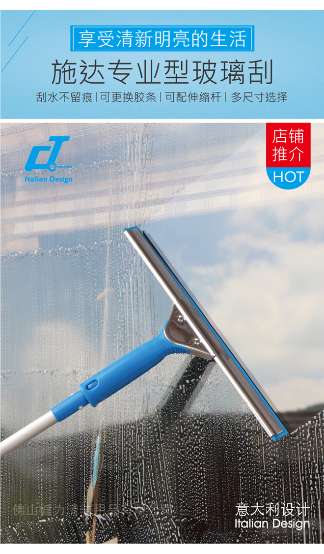 這款玻璃刮能更換膠條,配合長杆使用,能清潔大片的落地玻璃,或高空的玻璃。