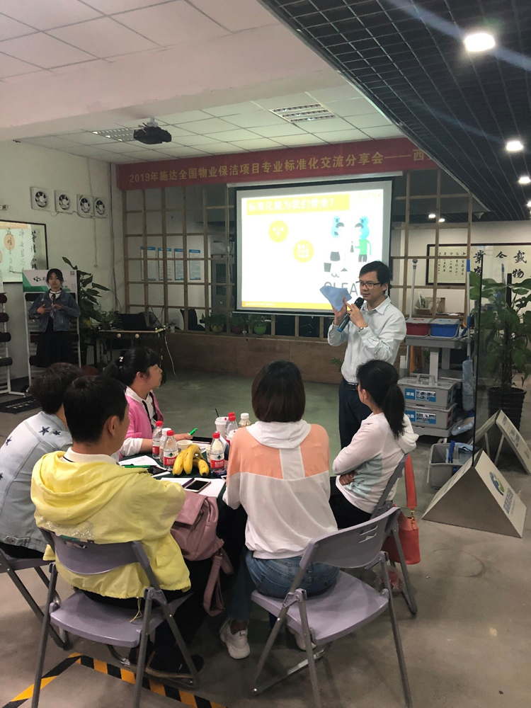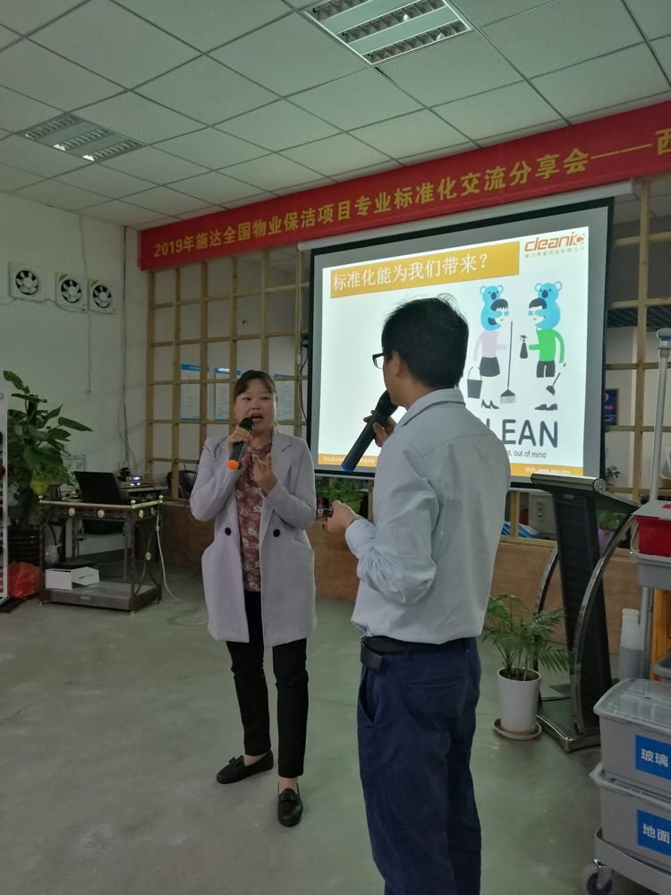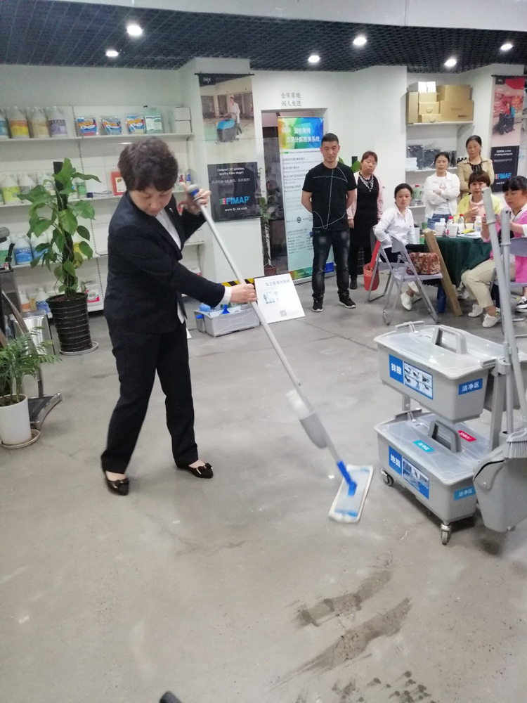 由施達總部分銷業務經理給來賓們講解演示產品在日常保潔的實際應用和管理,讓來賓們親
