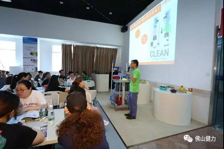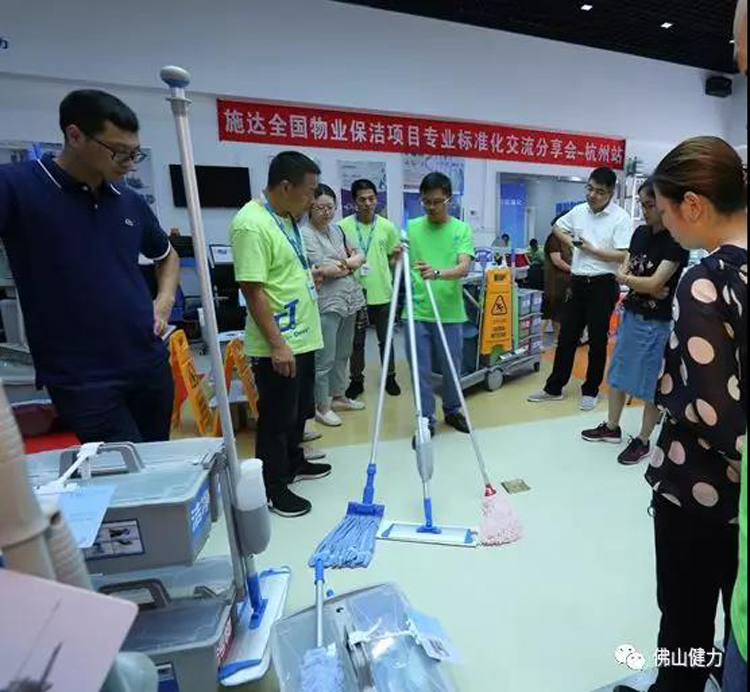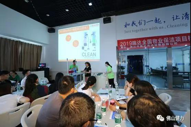 施達總部分銷業務經理給來賓們講解演示產品在日常保潔的實際應用和管理,讓來賓們瞭解
