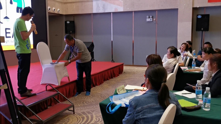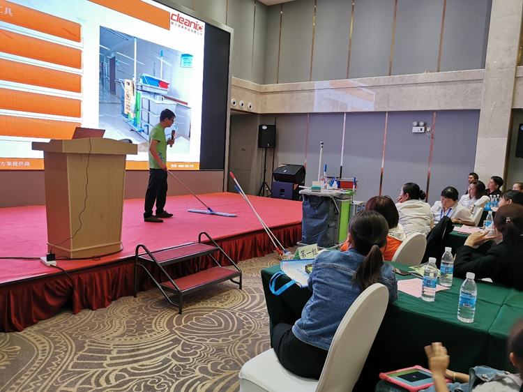 由施達總部分銷業務經理給來賓們講解產品在日常保潔的實際應用和管理。