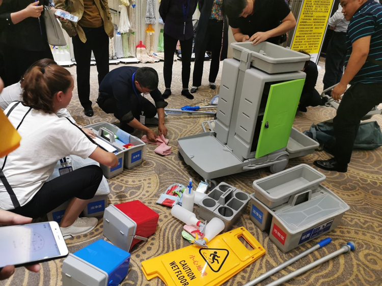 結合顏色分區&拼裝清潔服務車的小遊戲,加深來賓們對清潔工具的標準化操作的理解。
