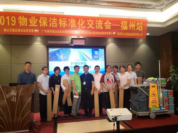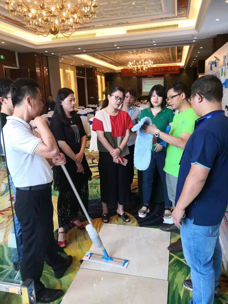 由施达总部分销业务经理给来宾们讲解演示产品在日常保洁的实际应用和管理。