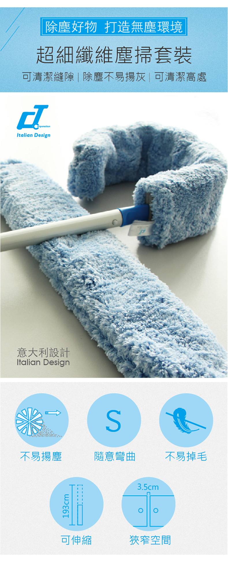 針對高處和細縫地方灰塵,CT - 微纖除塵掃可以輕鬆解決!