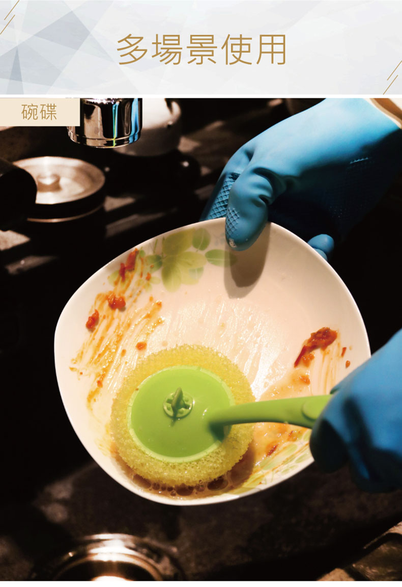 - 用途廣:洗碗碟,洗鍋,砧板,洗刷水槽,刷灶台。