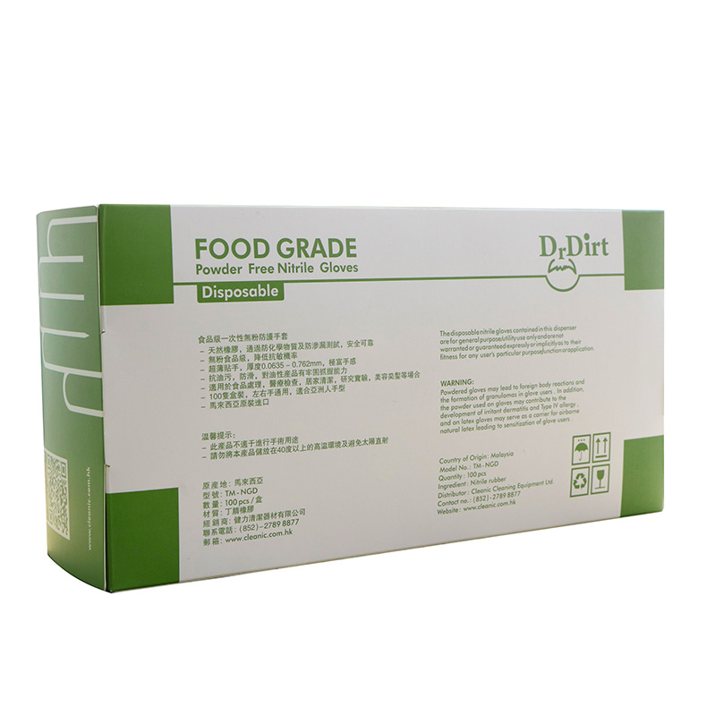 Dr.Dirt - 食品級一次性無粉末丁腈防護手套,可直接接觸食物 ,不會擔心雙手不潔而令食品受到污染。