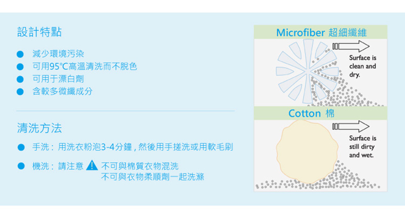 - 超細微纖編織,更強清潔能力